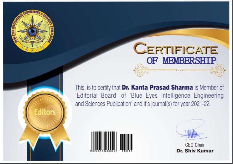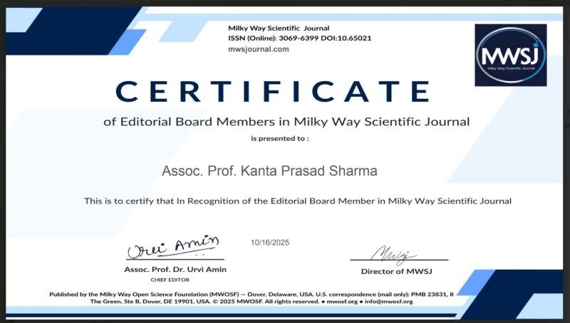 This section presents official certificates confirming editorial board memberships and